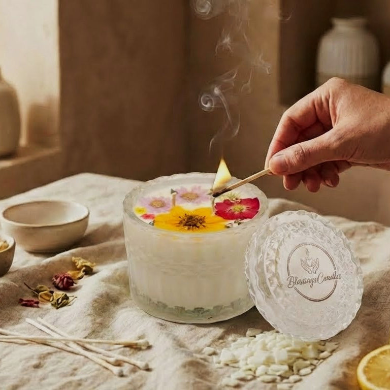 At Blessings Candles, we believe a candle is more than a fragrance it is a ritual, a gift, and a moment of calm. Founded in 2025, we are a UK-registered artisan brand creating hand-poured candles using 100% natural soy wax, natural wicks, and thoughtfully curated fragrance blends. Crafted in small batches, each candle ensures a clean burn, refined scent, and a truly premium experience. Every piece is made, finished, and quality-checked by us, designed to bring warmth, intention, and understated luxury into everyday living.